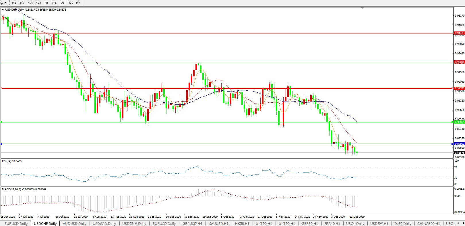 美元兑瑞郎USDCHF 日线图: