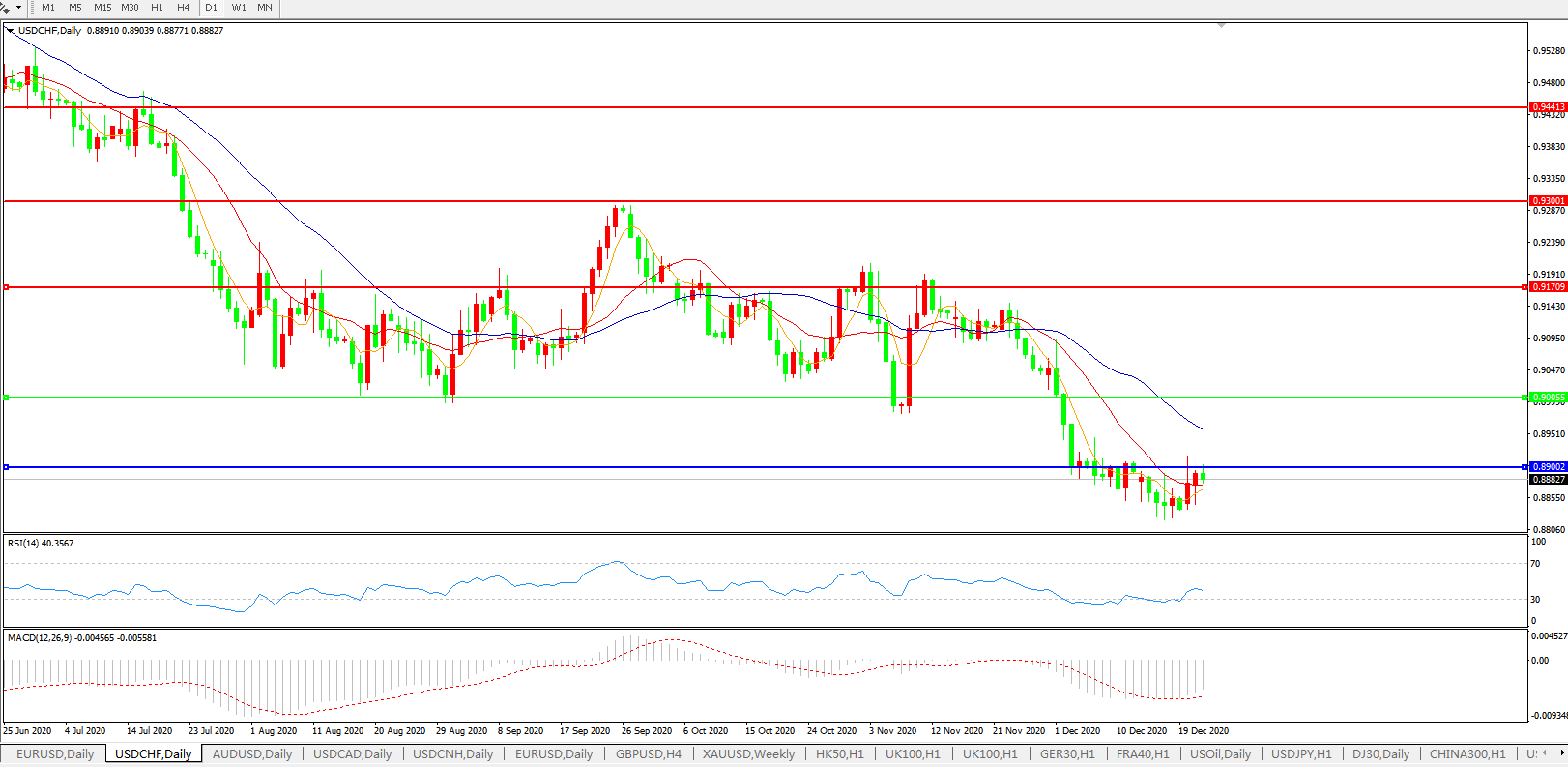 美元兑瑞郎USDCHF 日线图:
