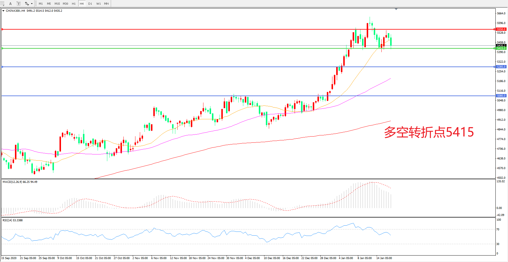 交易策略: 在5415.00之上看涨,目标5550.00       5680.00
