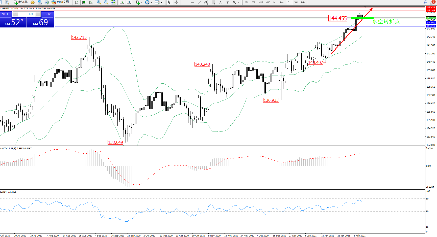 英镑兑日圆高位维持在144.529附近整理,在人们希望获得美国大规模刺激方案的推动下,美国资产走强,英国的疫苗接种运动有望助推新冠病例减少,英国传播最严重的的病毒,首当其冲的是B 1.1.7毒株(又名英国变种毒株),而更具感染力的冠状病毒版本才刚刚开始在美国传播。虽然,大西洋两岸英国和美国的病例都在下降,但在变异病毒在美国更可能会再次爆发。管有力的刺激措施仍然有利于美元,但不太可能立即通过,以使美元喘口气。英国的疫苗接种工作正在加速发展,超过17%的人口已经接受了疫苗注射,几乎是美国9.1%人口的两倍。