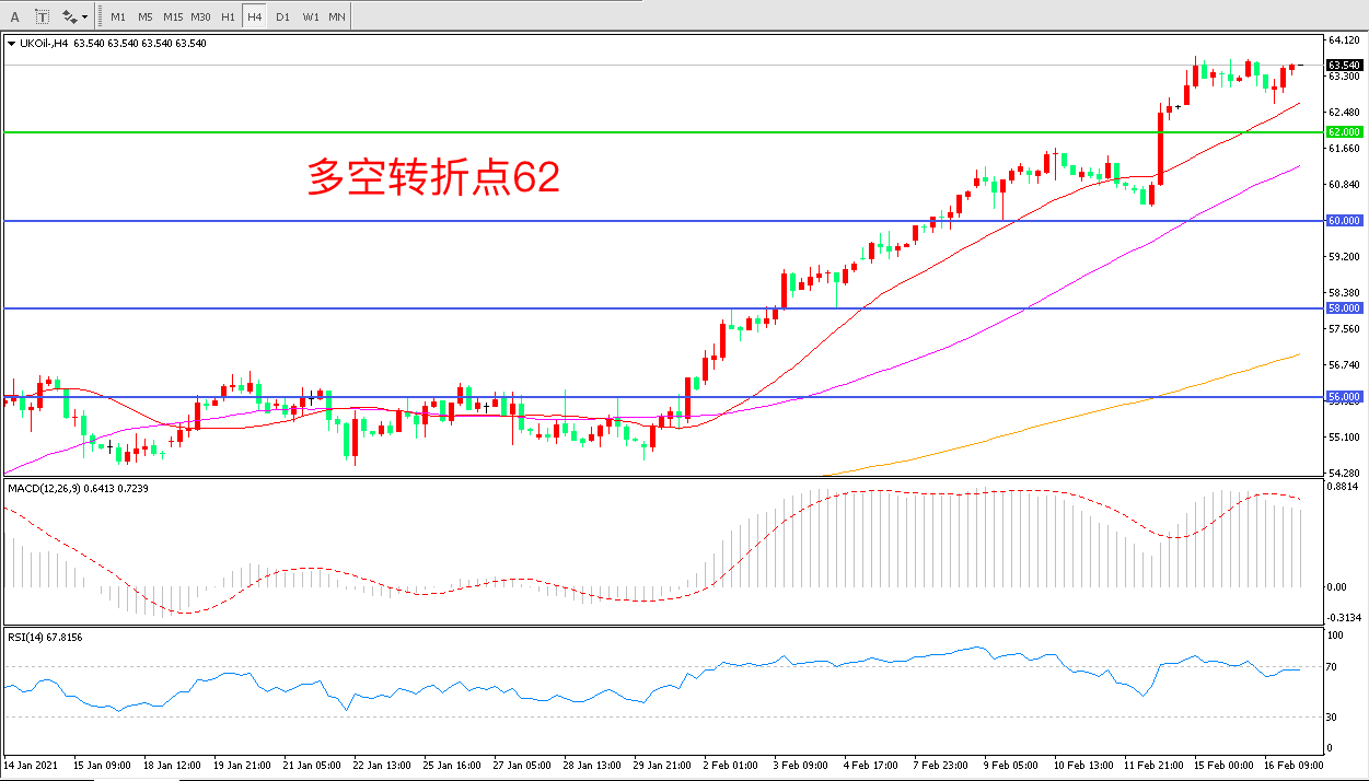 交易策略: 在62.00之上看涨,目标65.00 68.00