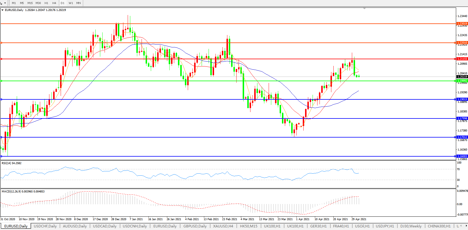 美国上周日均新冠病毒新感染人数降至5万人以下,相比之前一周下降17%,同时重症住院及死亡病例数同步下降。前美国食品药品管理局(FDA)首席科学家戈特利布因此在周末宣称,美国疫苗注射行动已经取得“里程碑式的成功”,预计在之后即将到来的夏季中,疫情将进一步趋于缓和; 目前全美已经有超过1亿成年人完成了全部两剂疫苗注射,这离6月底实现全民免疫目标又近了一步。而这一消息也因而对市场风险情绪构成进一步利多,推动美股股指期货进一步逼近新高。投资者此后将关注本周五美国发布的美国4月非农就业数据,在疫情消退背景下,就业活动可能进一步走强,这将对美元汇价有额外提振作用。