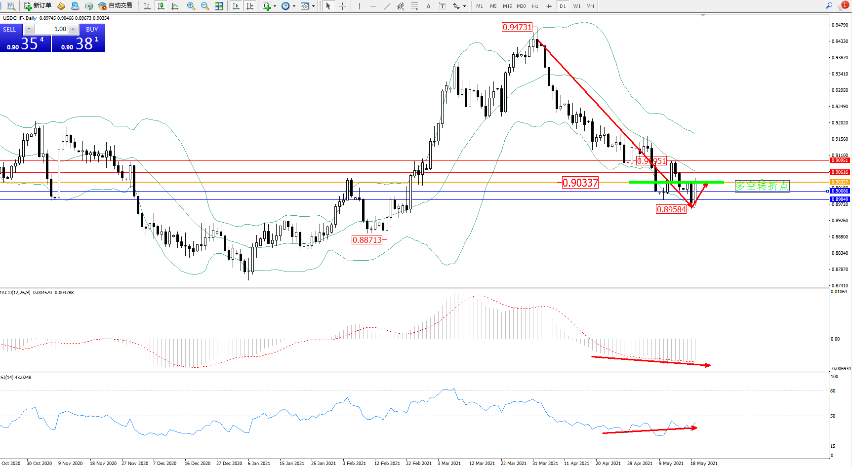 美元瑞郎USDCHF——日K线图显示: