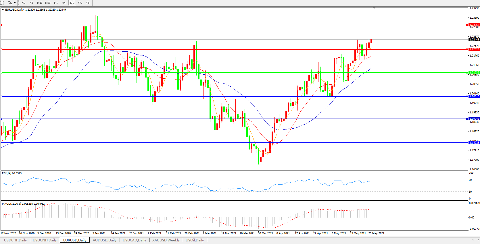 欧元兑美元EURUSD 日线图: