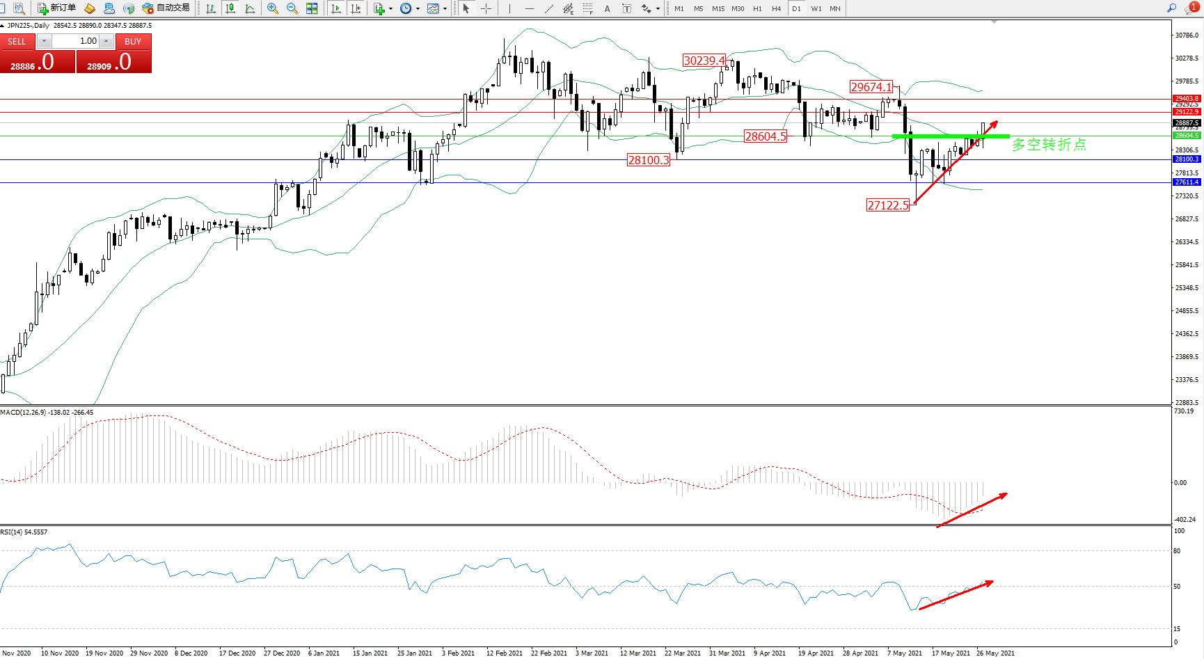 日经225指数5月27日(周四)收盘下跌124.19点,跌幅0.43%,报28518.00点。最近的民意调查显示,大多数公众反对举办今年的奥运会,一些杰出的商界领袖对推进奥运会是否明智提出了质疑。经济学家认为,如果取消举办奥运会的计划,日本经济将步入艰难复苏的糟糕时期。取消奥运会对日本经济的直接影响高达166亿美元。虽然首相菅义伟坚持想要奥运如期举行,但是看上去他势必需将现行疫情紧急状态延续到6月中旬,届时距奥运会开幕就只有一个月的时间了。延长紧急状态料日本经济将连续第二个季度出现萎缩。日本首相菅义伟:病毒在东京和其他地区呈下降趋势,周五将与病毒紧急情况专家小组协商,将在与专家的商讨之后就是否延长疫情紧急状态作出决定。