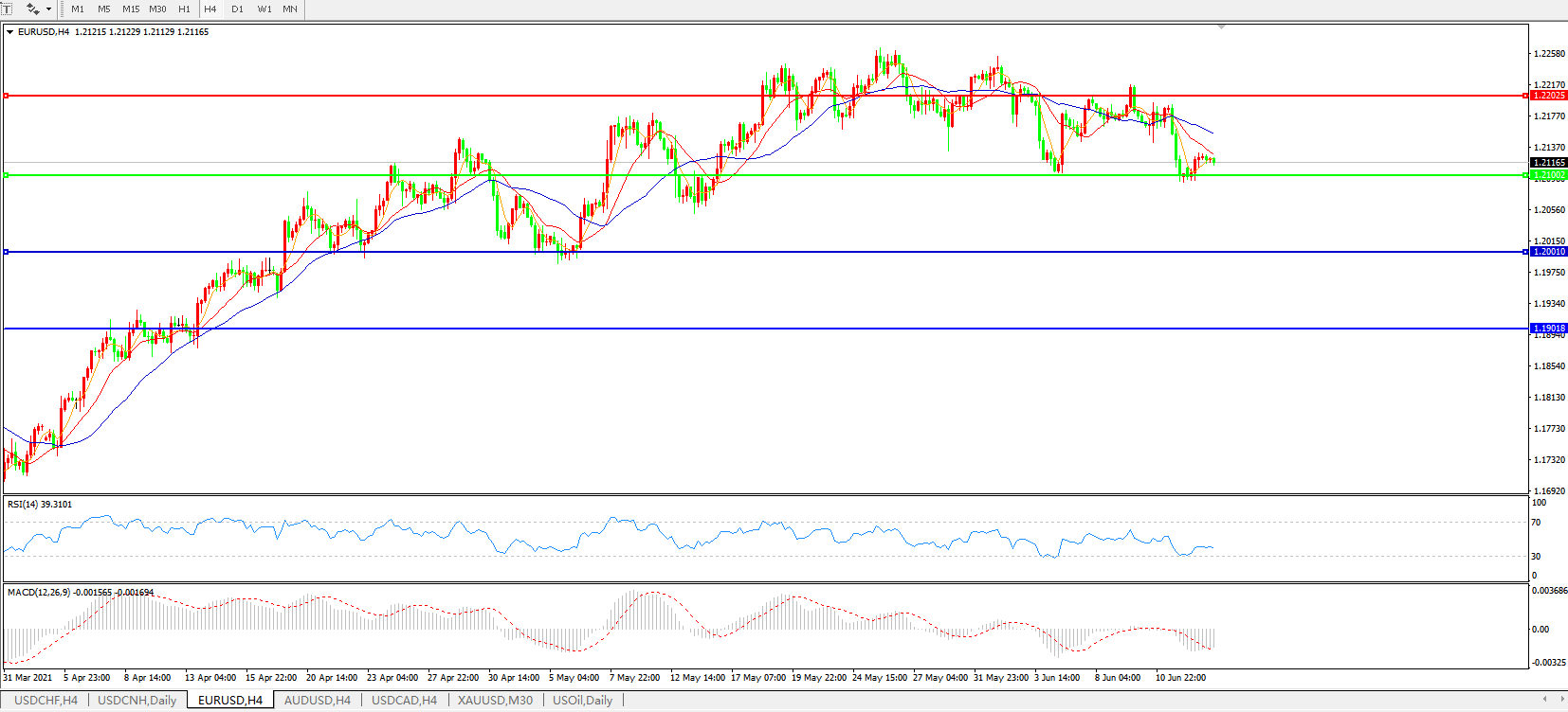 欧元兑美元EURUSD   4小时图: