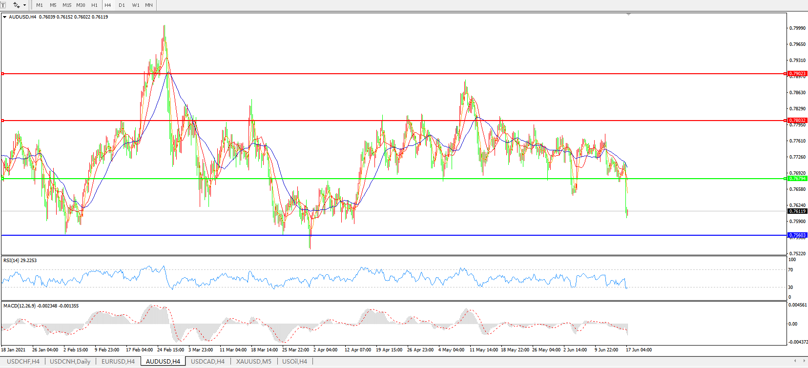 AUDUSD 4小时图: