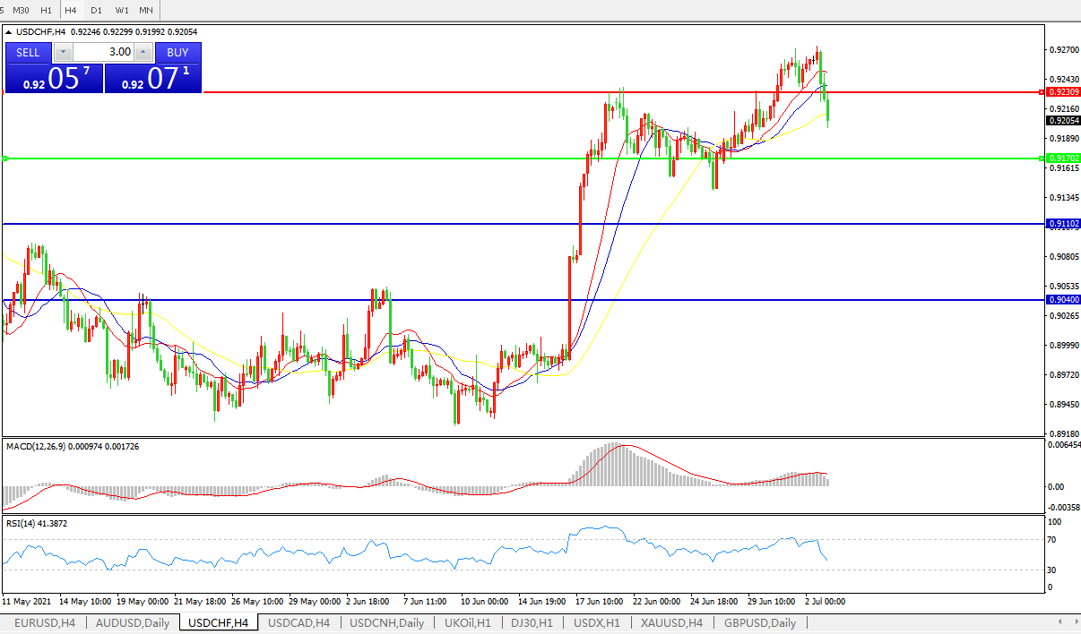 美元兑瑞郎USDCHF 4小时图: