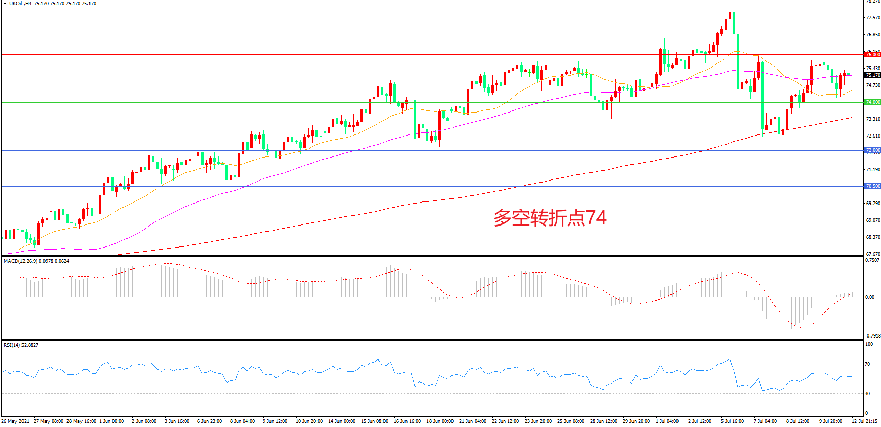 多空转折点:74.00