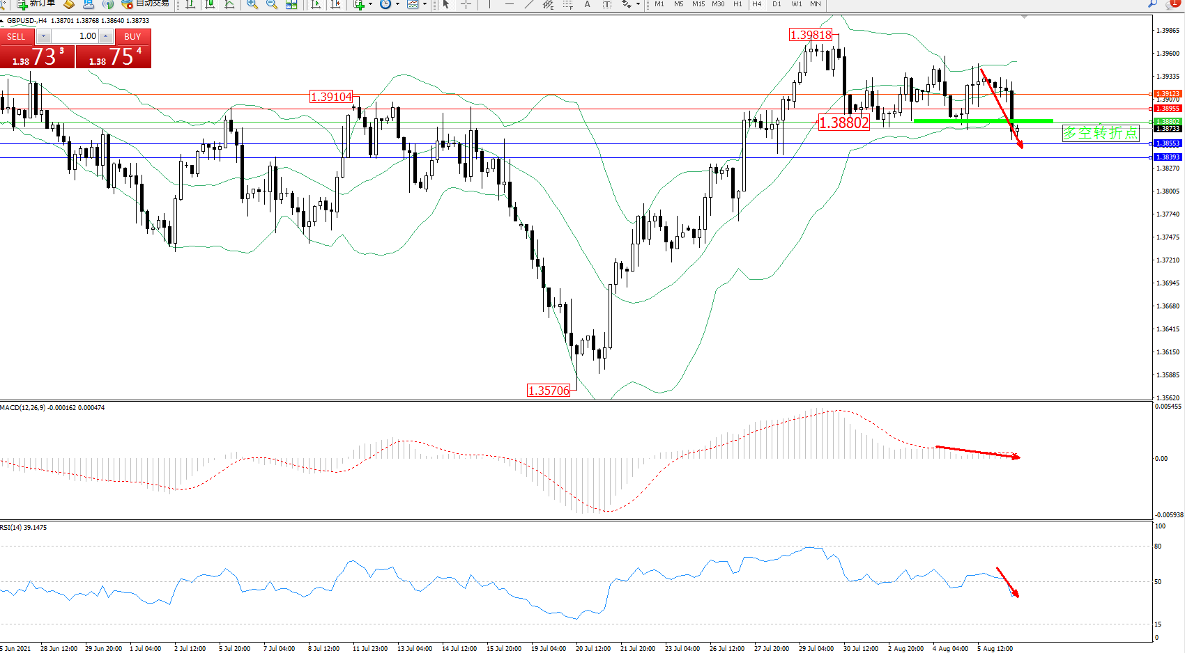 交易策略:1.38802下方看跌,目标1.38553、1.38393