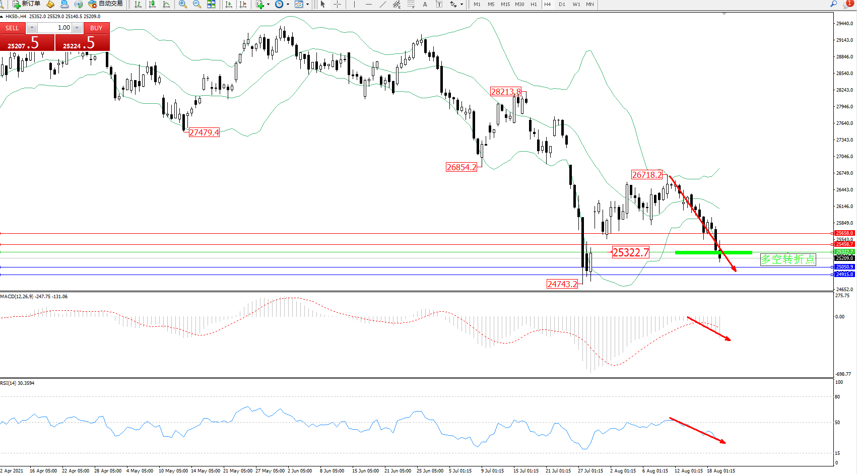 恒指HK50 ——4小时K线图显示: