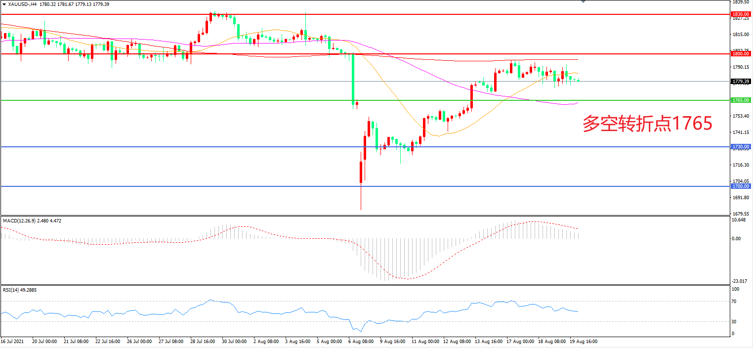 周四(8月19日),投资者权衡德尔塔毒株对全球经济复苏的影响以及更鹰派美联储的迹象,多空双方表现谨慎,现货黄金延续窄幅震荡,收报1787.71美元/盎司。在美联储转向缩债的大背景下,下周召开杰克逊霍尔央行年会将成为全球瞩目的焦点,市场将关注美联储主席鲍威尔届时在讲话中是否会进一步释放减码的信号。