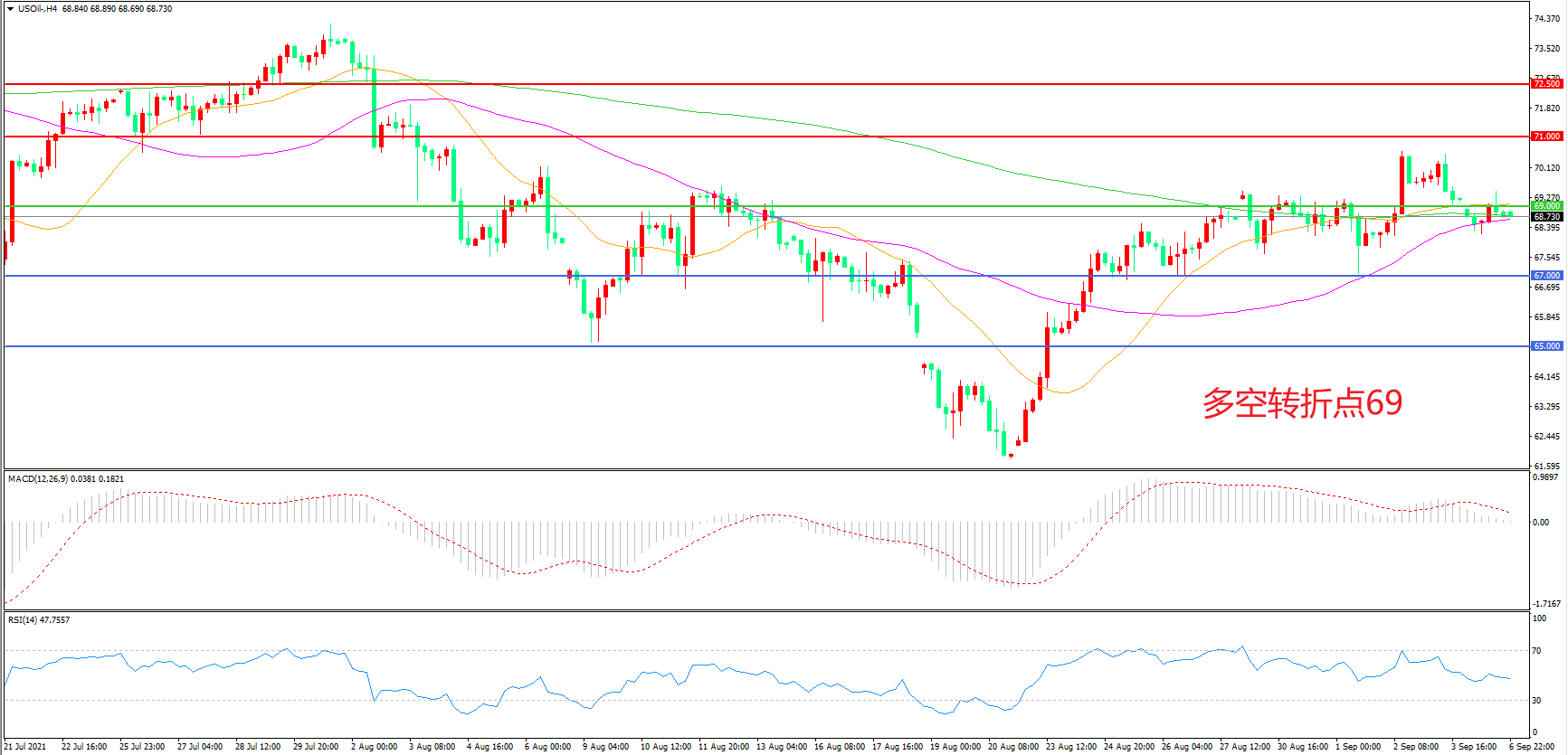 多空转折点:69.00