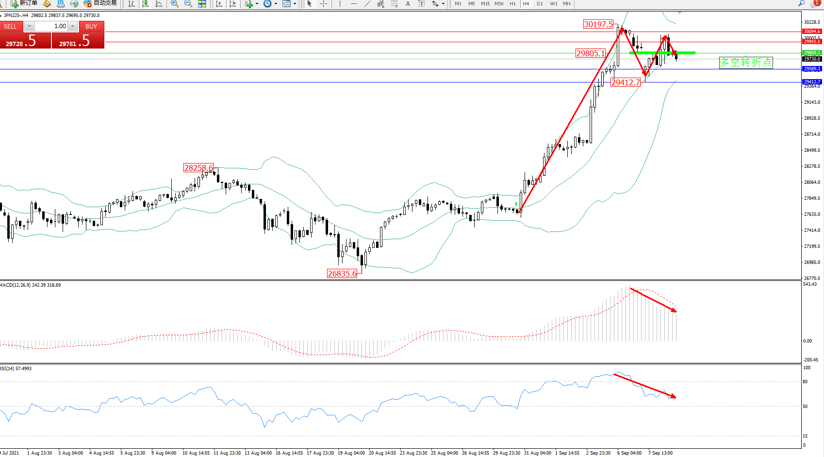 多空转折点:29805