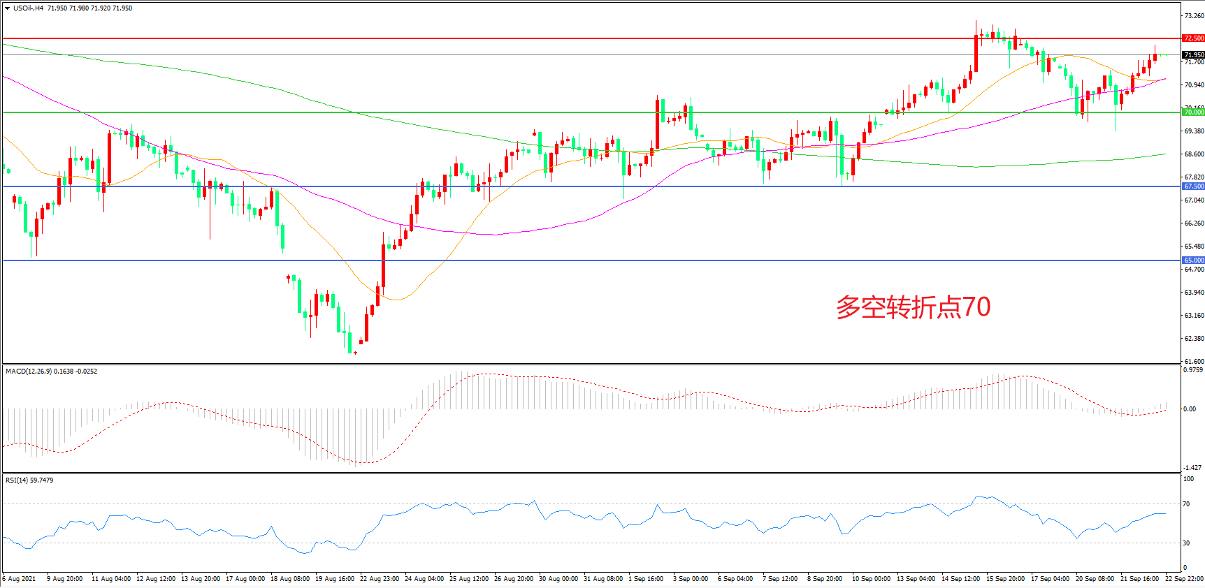 多空转折点:70.00