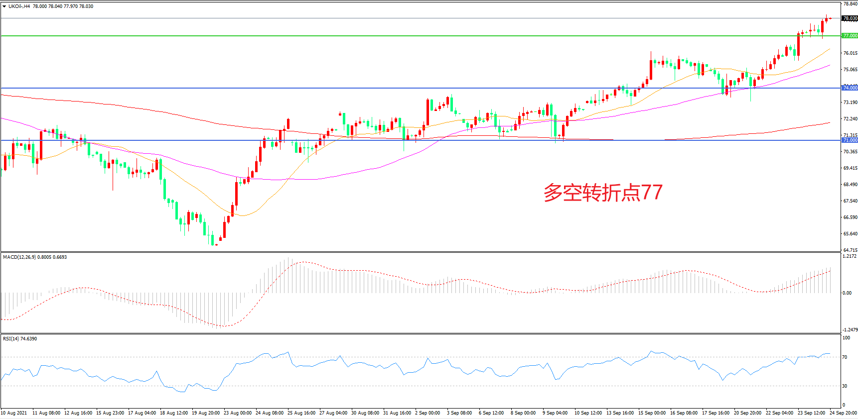 交易策略:在75.50之上看涨,目标80.00                      83.50