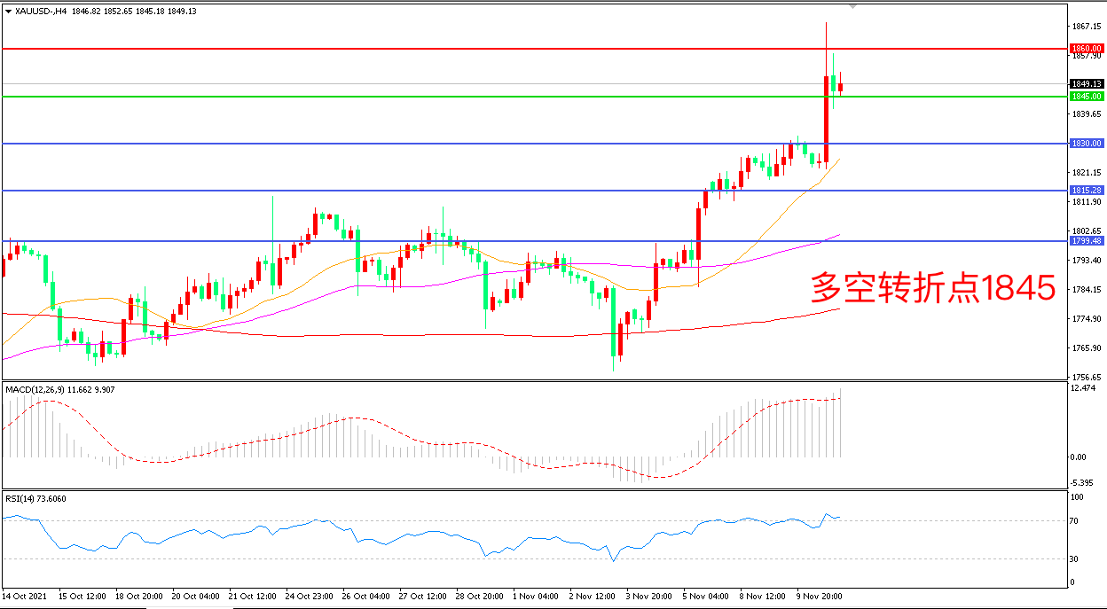 交易策略:在1845.00之上看涨,目标1860.00 1875.00