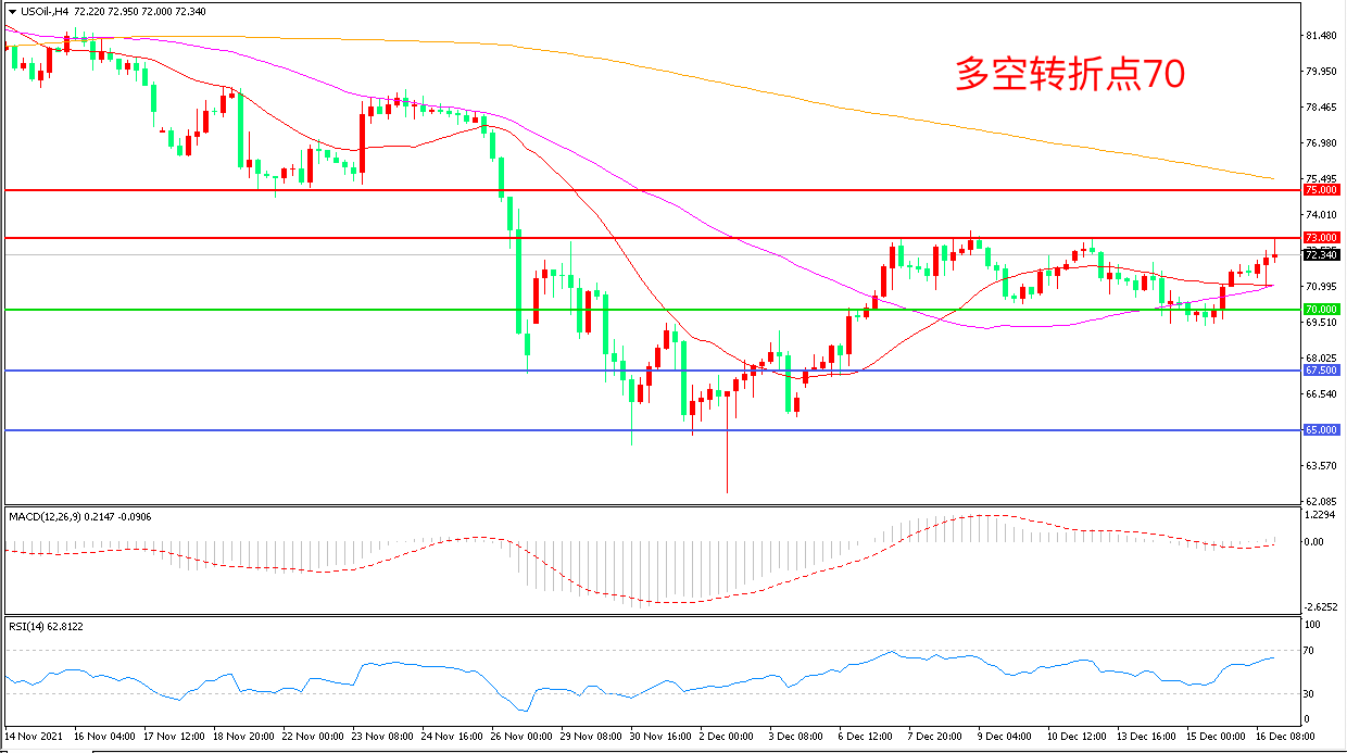 交易策略:在70.00之上看涨,目标73.00 75.00