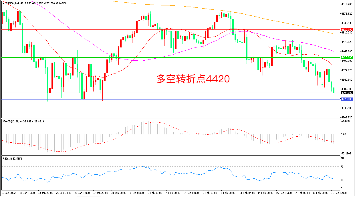 交易策略:在4420.00之下看跌,目标4270.00        4150.00