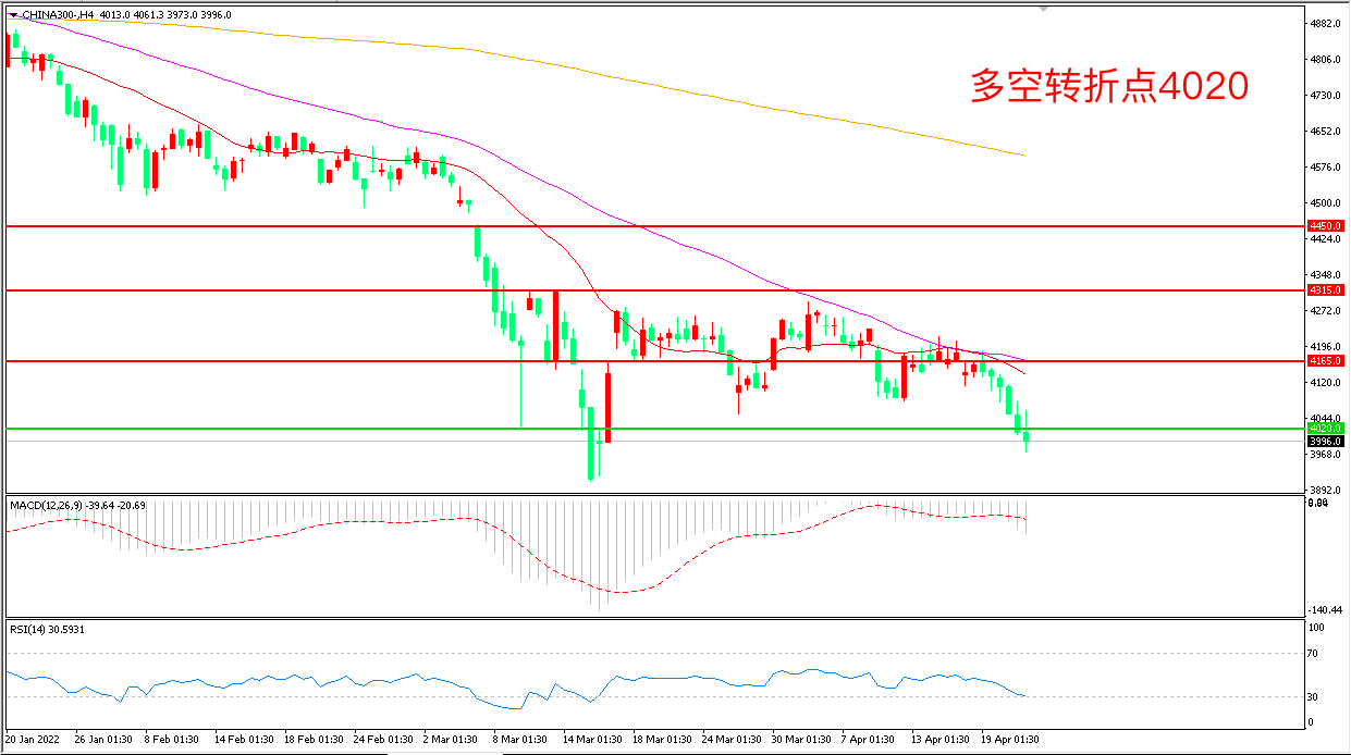 交易策略:在4020.00之下看跌,目标3850.00                3730.00