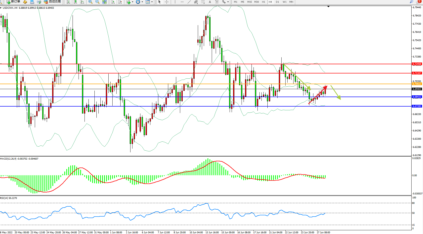 备选策略:6.70022上方看涨,目标6.71347、6.72458
