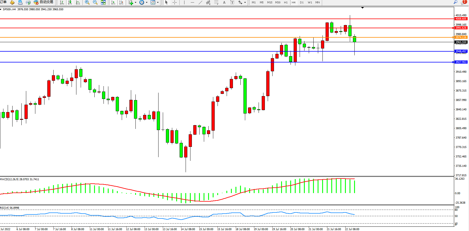 标普SP500——4小时K线图显示: