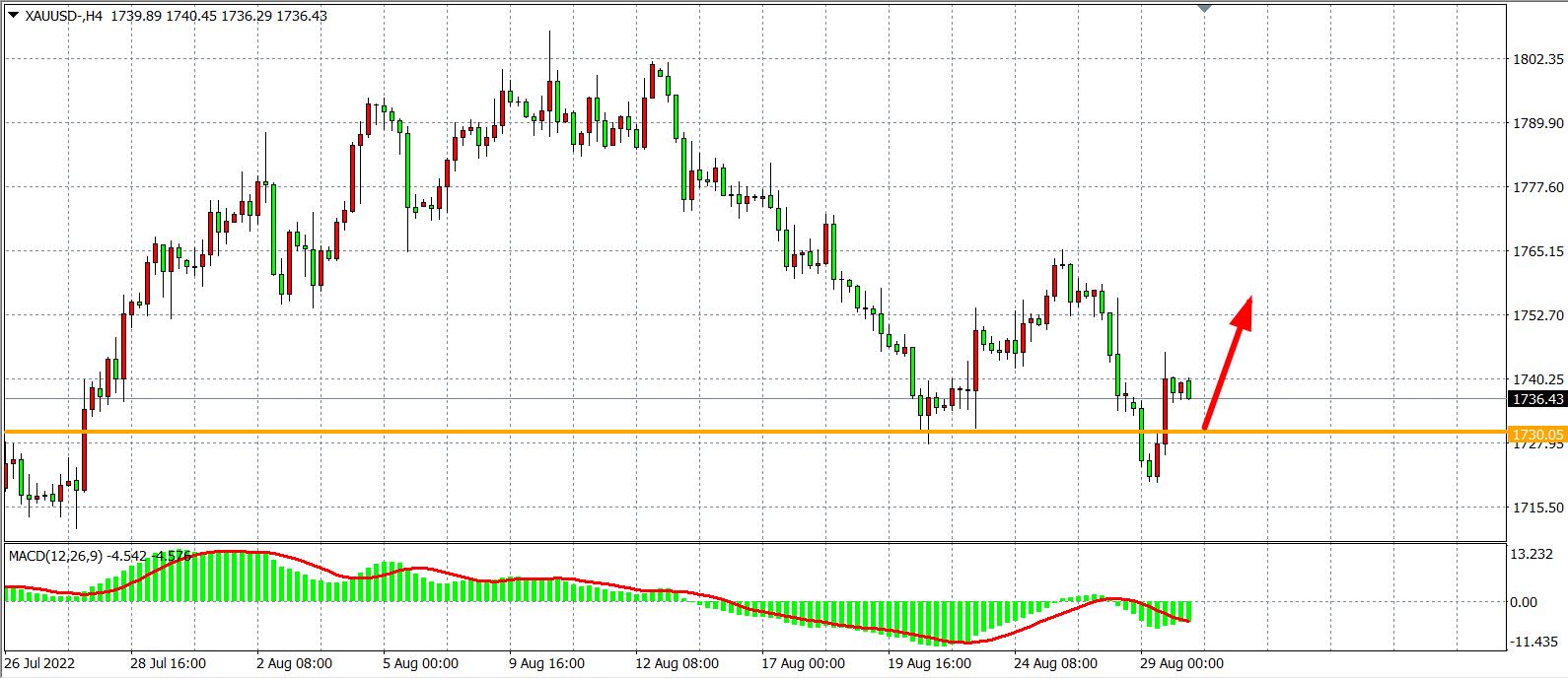 备选策略:在1730.00之下看跌,目标1720.00 1700.00