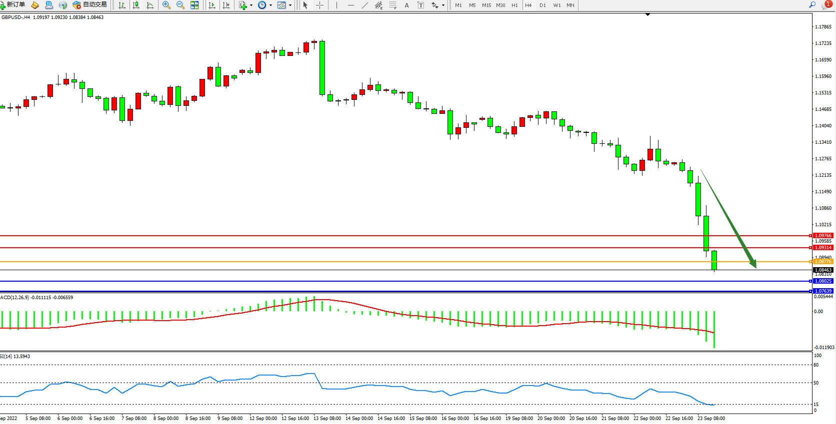 英镑兑美元维持1.08463附近震荡,市场几乎完全消化了加息75个基点的预期,英镑兑美元直接刷新到1.121的低点,整个节奏完全处于失衡的一种状态中。