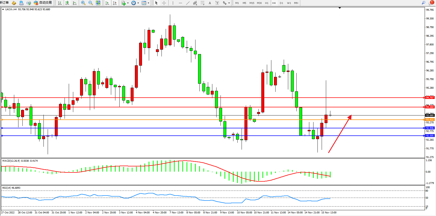 布油UKOil——4小时K线图显示:
