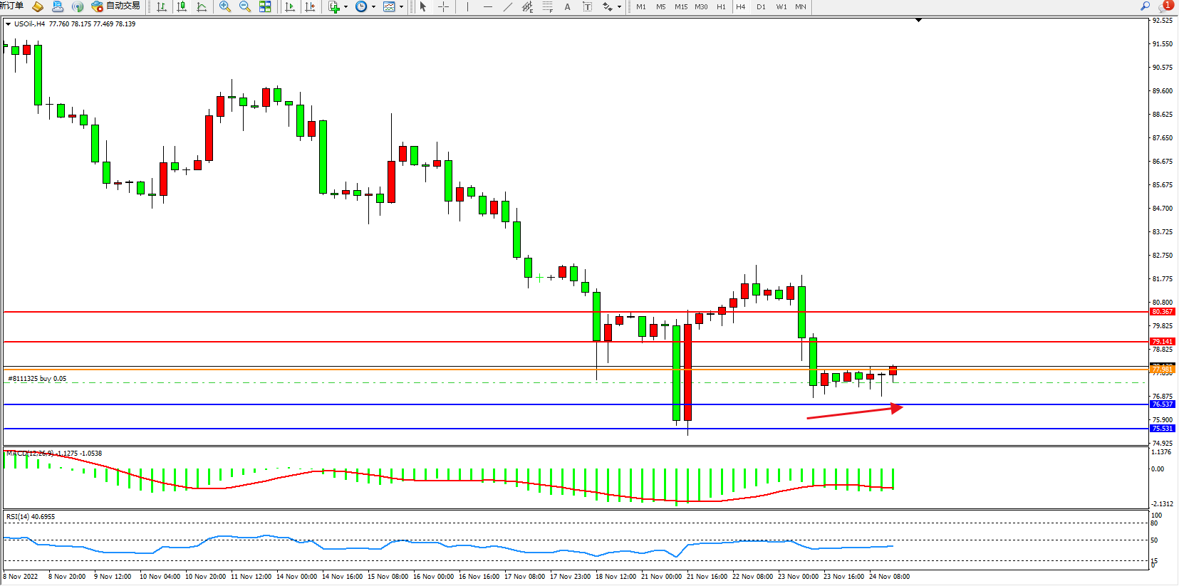 原油USOil——4小时K线图显示: