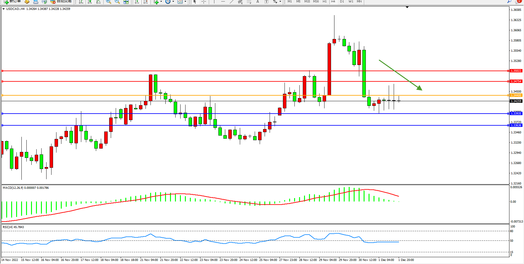 美元兑加元维持1.34259附近震荡,市场预计加拿大央行2022年第4季度终端利率为4.25%。