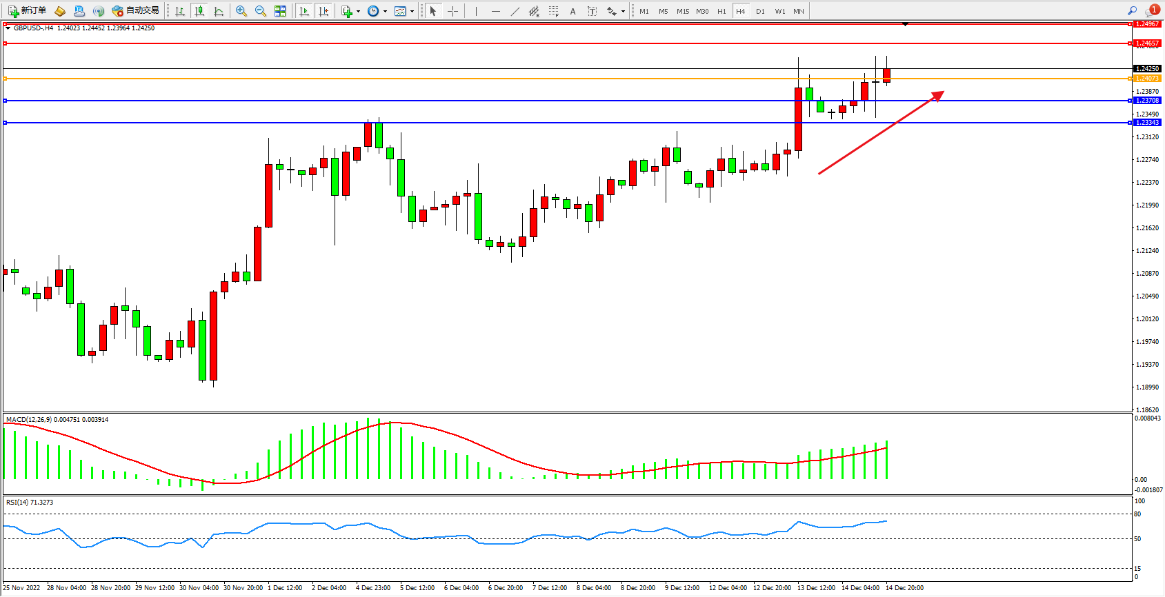 交易策略:1.24073上方看涨,目标1.24657、1.24967