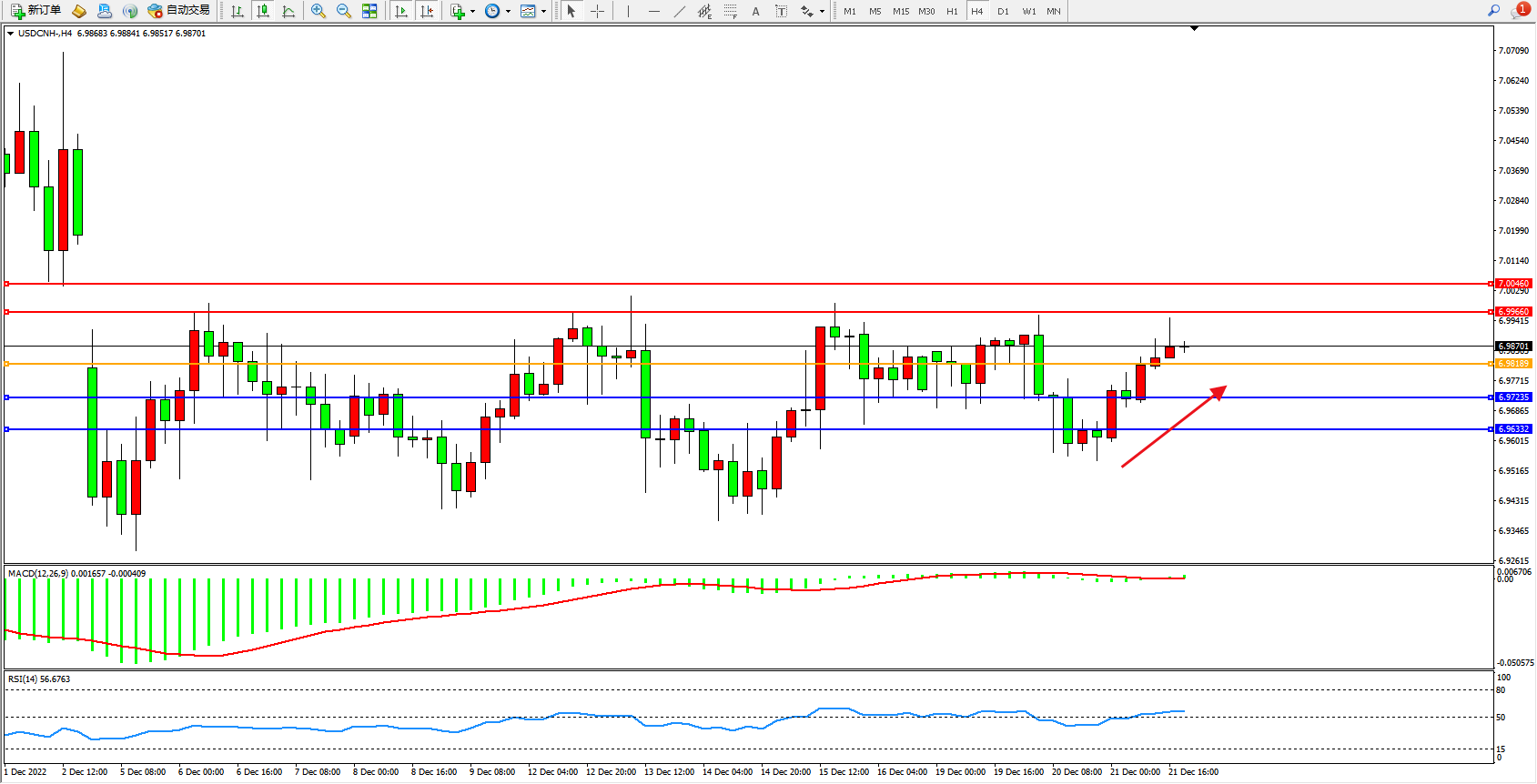 交易策略:6.98189上方看涨,目标6.99660、7.00460