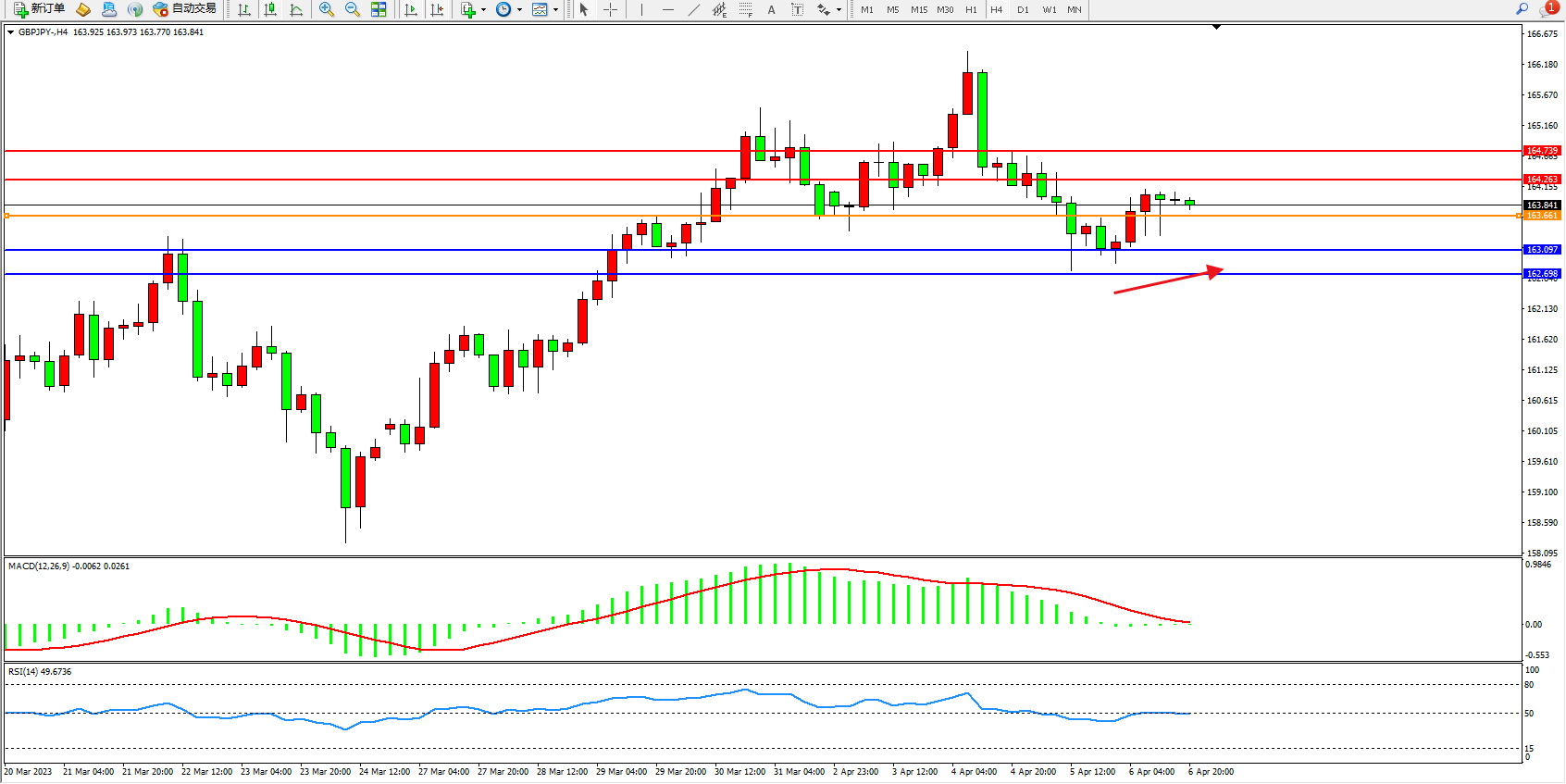 备选策略:163.661上方看涨,目标164.263 164.739