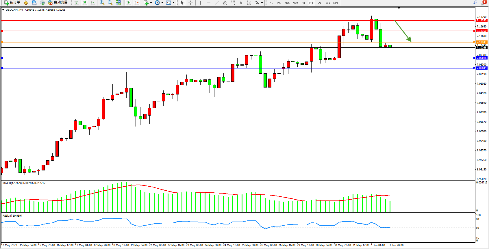 交易策略:7.10849下方看跌,目标7.09016  7.07849