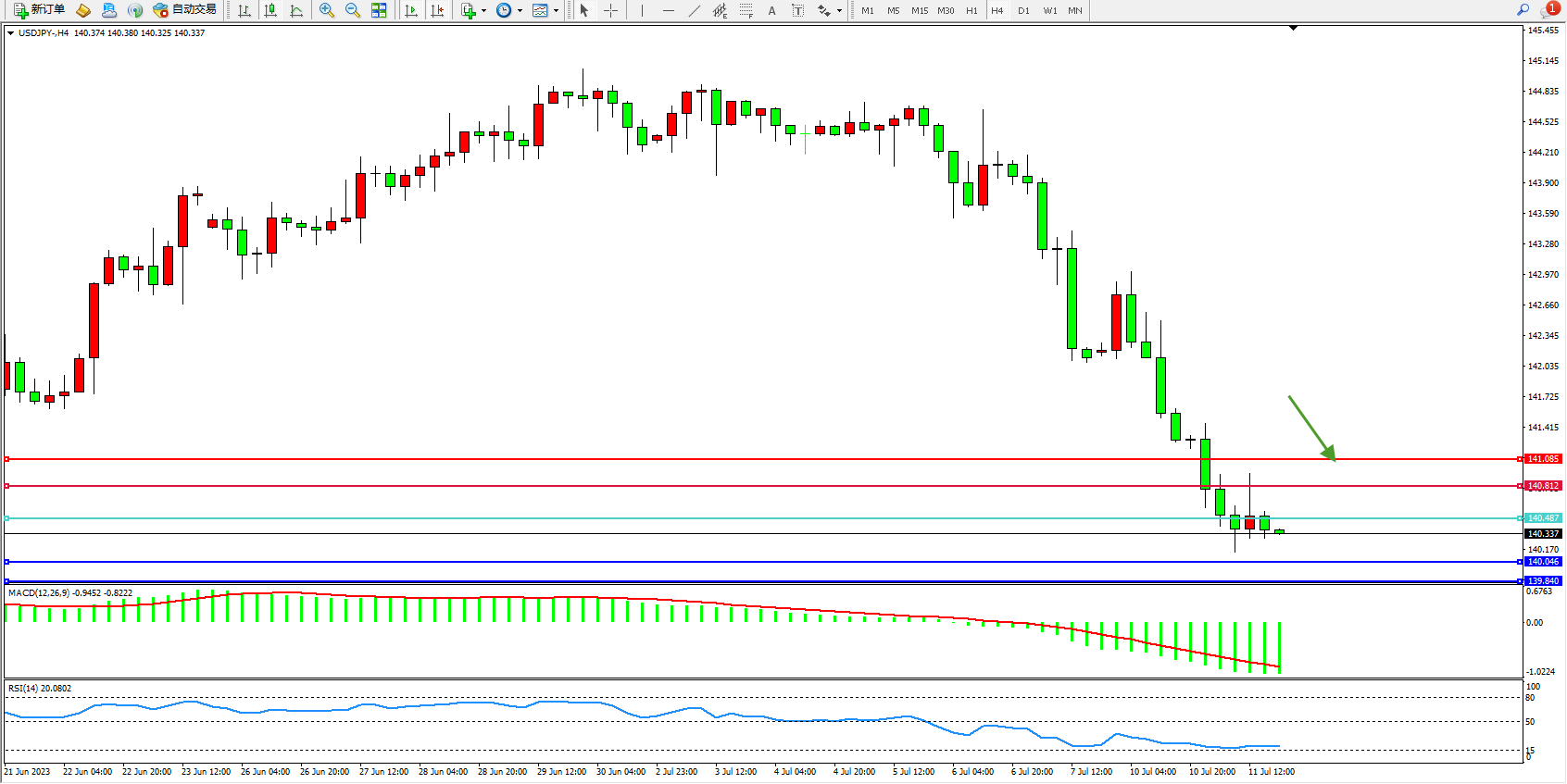 交易策略:140.487下方看跌,目标140.046  139.840