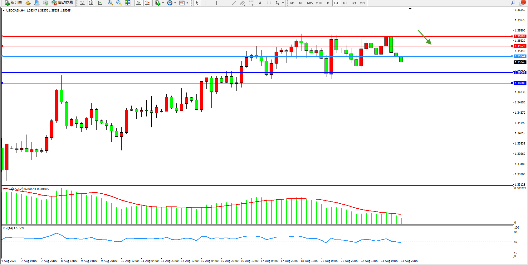 备选策略:1.35344上方看涨,目标1.35522  1.35689