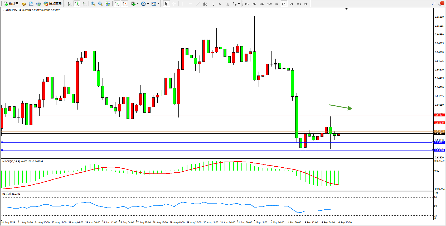 交易策略:0.63833下方看跌,目标0.63702 0.63608
