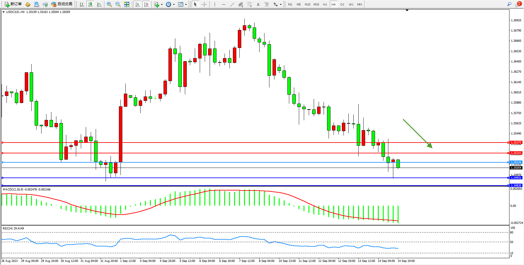 美元加元USDCAD——4小时K线图显示: