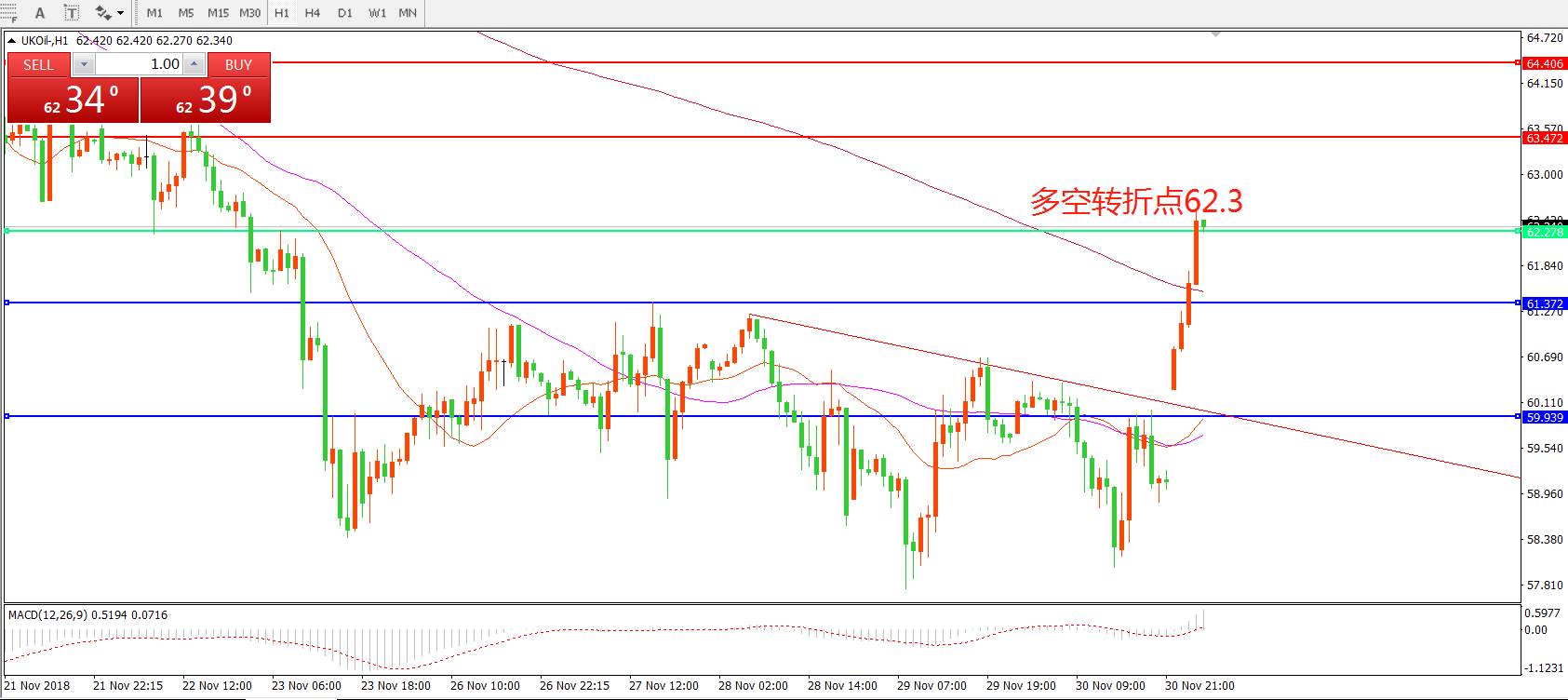 多空转折点:62.30