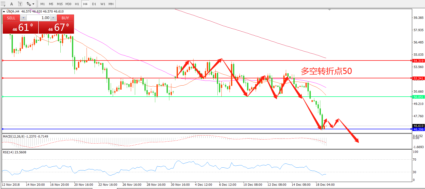周一美国能源信息署(EIA)公布的最新预期显示,2019年美国页岩油产量将继续上升。同时有报道指出,俄罗斯本月原油产量将增加至1142万桶/日,如果俄罗斯真是如此多的产油量,将创其纪录新高。美国和俄罗斯产量创新高令市场持续担忧,美国WTI原油周二(12月18日)暴跌7.17%,报46.60美元/桶。自10月初触及约四年高位以来,WTI原油从高位到低点已跌去40%,今年迄今的跌幅已超过23%。