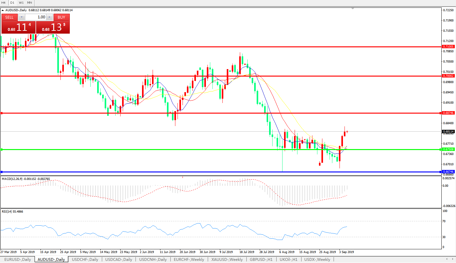 支撑位:0.6675 0.6600