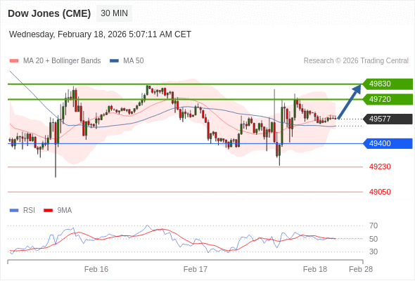 在 49400 之上,看涨,目标价位为 49720 ,然后为 49830 。