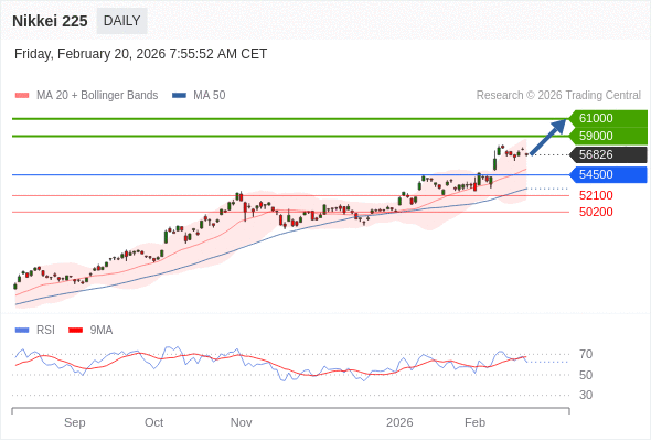 在 54500 之上,看涨,目标价位为 59000 ,然后为 61000 。