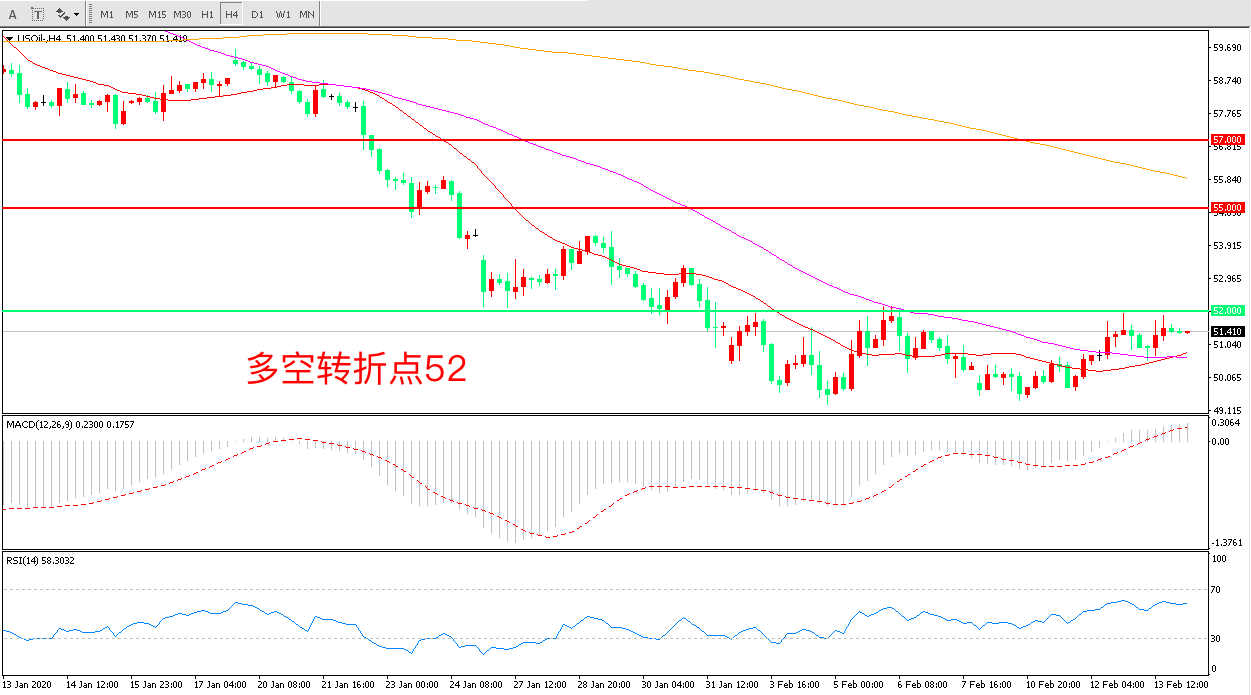 (2月13),OPEC将2020年原油需求预估下调20万桶/日,而市场中有消息传出,俄罗斯已经暗示支持OPEC+ 进一步减产,这引发OPEC可能进一步减产的预期。多空交织下,美国WTI原油延续震荡51.48美元/桶。
