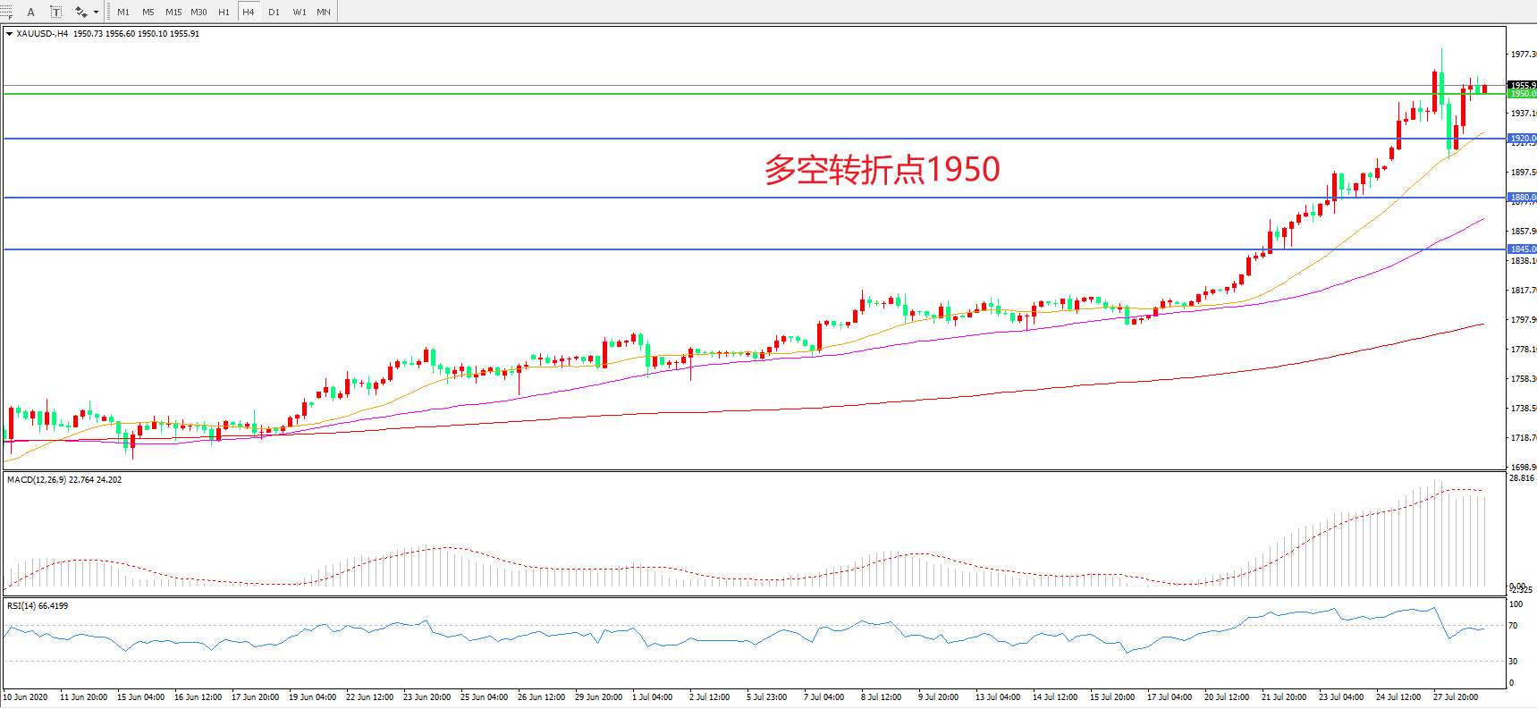 多空转折点:1950.00