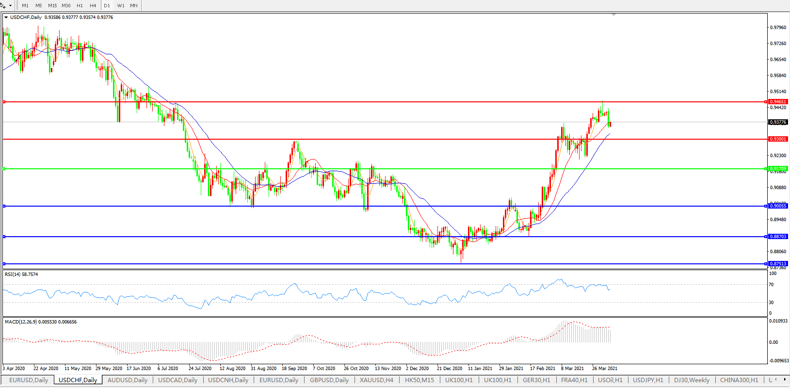 美元兑瑞郎USDCHF 日线图: