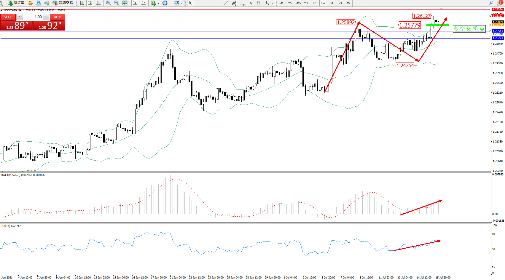 美元加元USDCAD——4小时K线图显示: