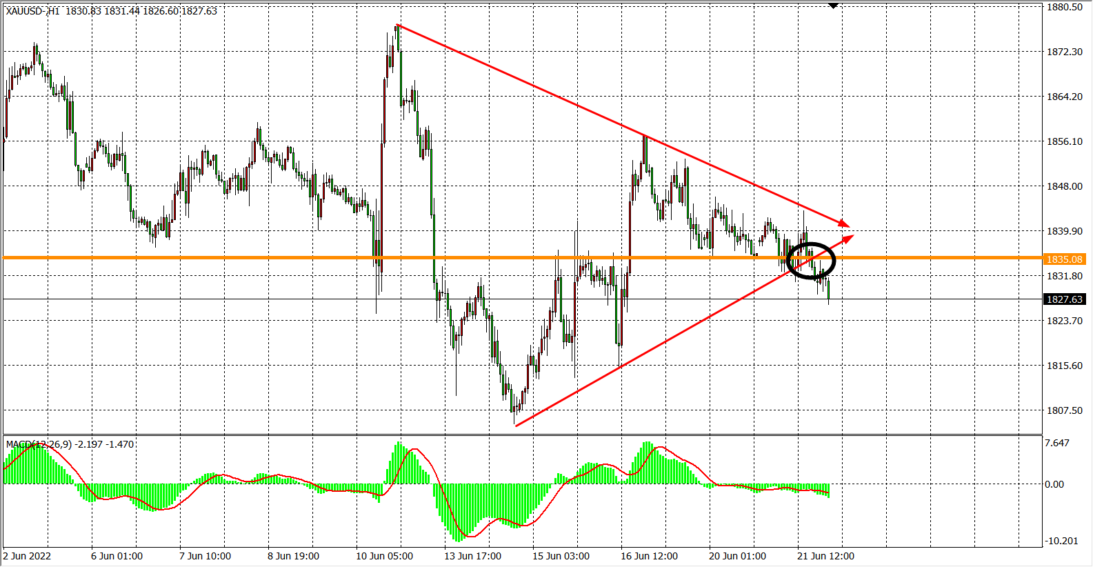 交易策略:在1835.00之下看跌,目标1820.00          1805.00