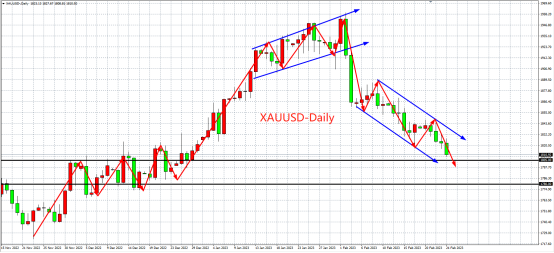 总的来说,在美国劳动力市场和经济活动仍维持强劲的情况下,美国通胀在经过半年的缓慢回落后可能进入波动期,价格恢复稳定并非一帆风顺,美联储加息之路或仍远未结束。因此,在没有更多经济数据证明美国经济放缓和通胀回落之前,目前仍有理由相信美元和美债收益率将保持强势,金价后市将继续面临较显著下行压力,自2月初以来的下跌趋势很可能还将延续。 美联储利率提升利空金价 近期美联储官员密集发出鹰派信号。在PCE数据公布后,克利夫兰联储主席梅斯特指出,最新的通胀报告证实了美联储需要更多加息以确保通胀回落。波士顿联储主席柯林斯也称,美联储必须继续提高利率,以使其达到足够限制性的水平,并且可能需要在“更长”一段时间内维持高利率。圣路易斯联储主席布拉德则敦促加快加息步伐,快速重建美联储的信誉。 与此同时,金融市场开始怀疑美联储能否将通胀率降至目标水平。一项批评美联储最初对物价上涨反应迟缓的最新研究预测,美联储可能需要将利率提高至6.5%才能击败通胀。在该研究中,五位经济学家和学者认为,政策制定者的前景过于乐观,需要施加一些经济痛苦才能控制价格。 黄金正在美联储卷起的宏观风暴中艰难前行,其年初受降息预期推动的涨幅已经尽数抹去。OANDA高级市场分析师Edward Moya指出,美联储政策利率的峰值可能迎来重大的重新定价,一些投资者现在预计将超过6%,这足以让金价继续下挫。如果黄金跌破1800美元,金价的前景可能会“变得糟糕”,可能会再下跌50美元。